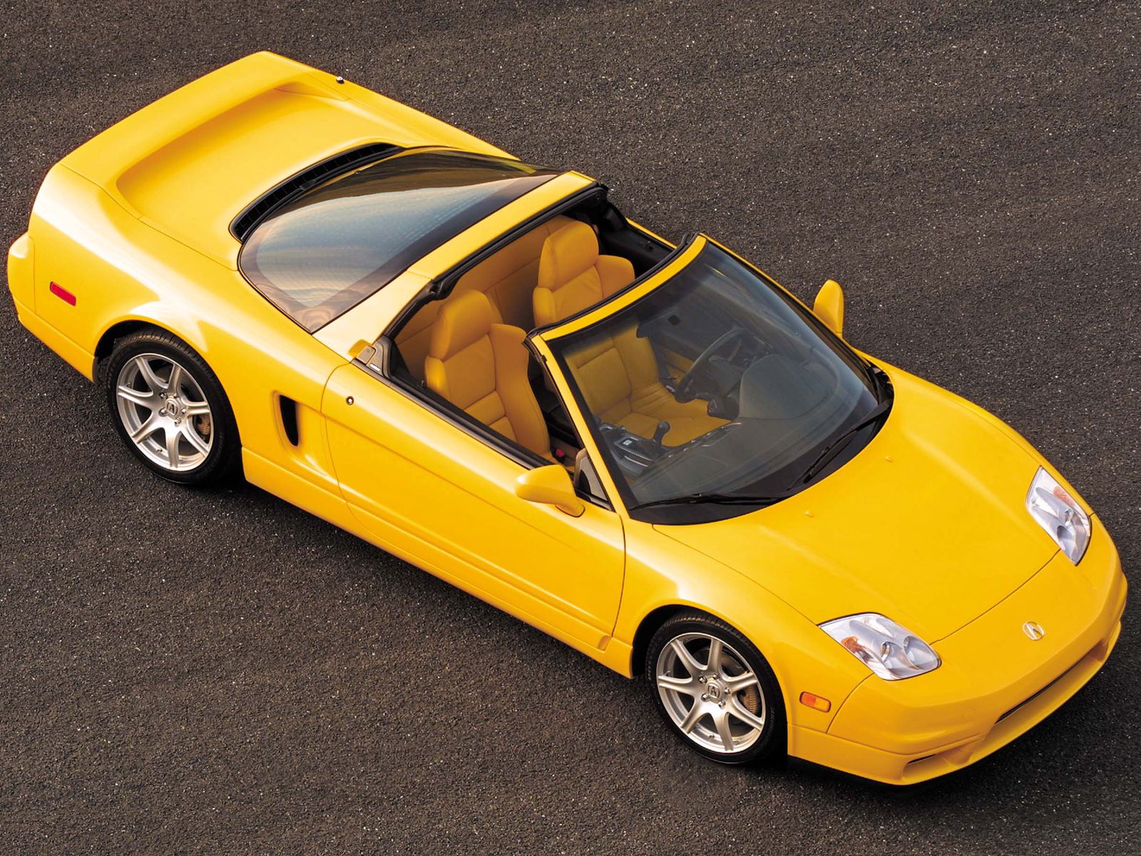 Description: A yellow sports car is parked on the street with its doors open and the top down and the interior down.