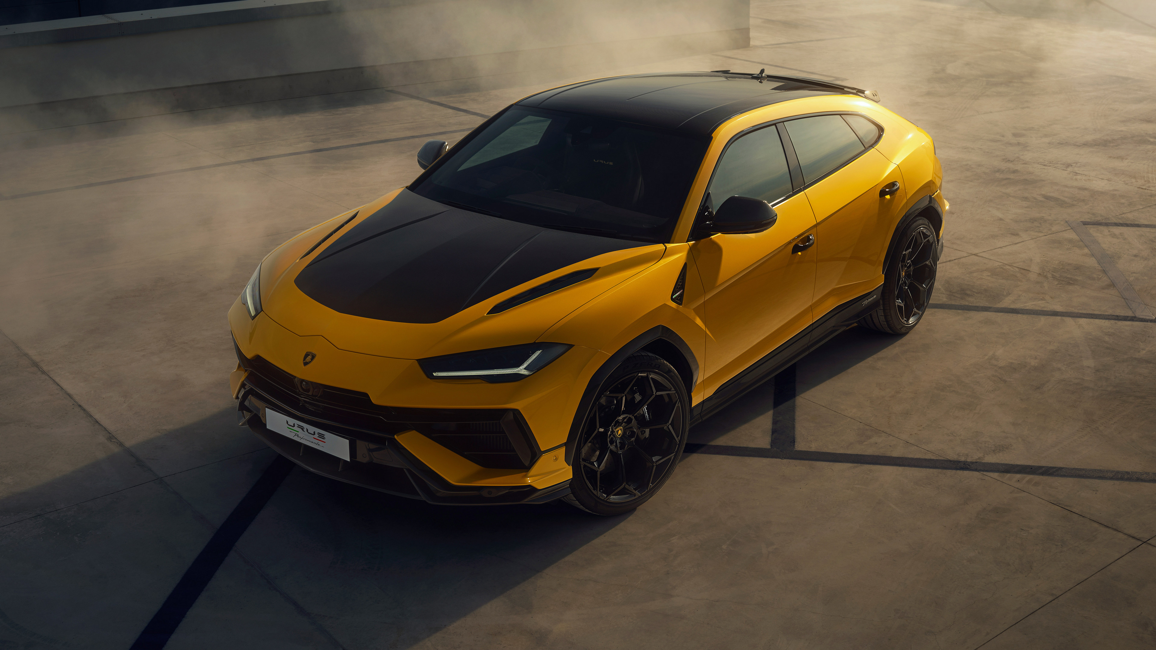 Description: A yellow sports car is parked on a concrete surface with smoke coming out of the hood and the hood.