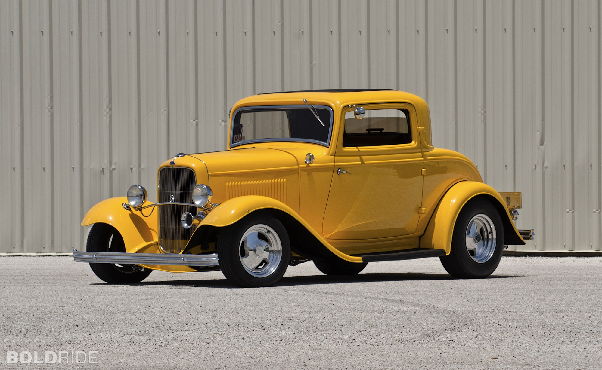 Description: A yellow truck parked in front of a building with a metal wall behind it and a building behind it.