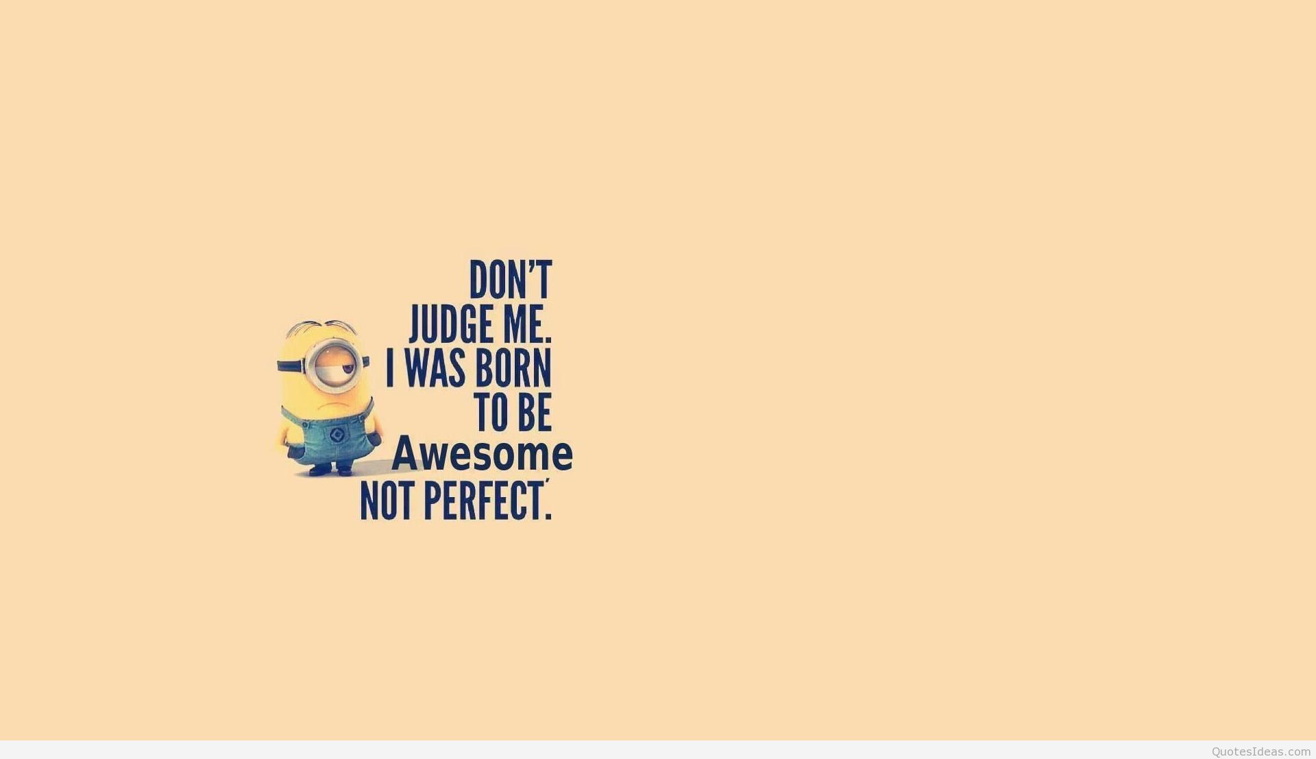 Description: A yellow wall with a despicable minion on it's side and a quote that says don't judge me it was born to be awesome.