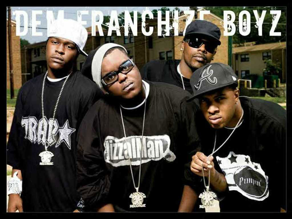 Description: A group of young men standing next to each other wearing black shirts and hats and sunglasses on their heads.