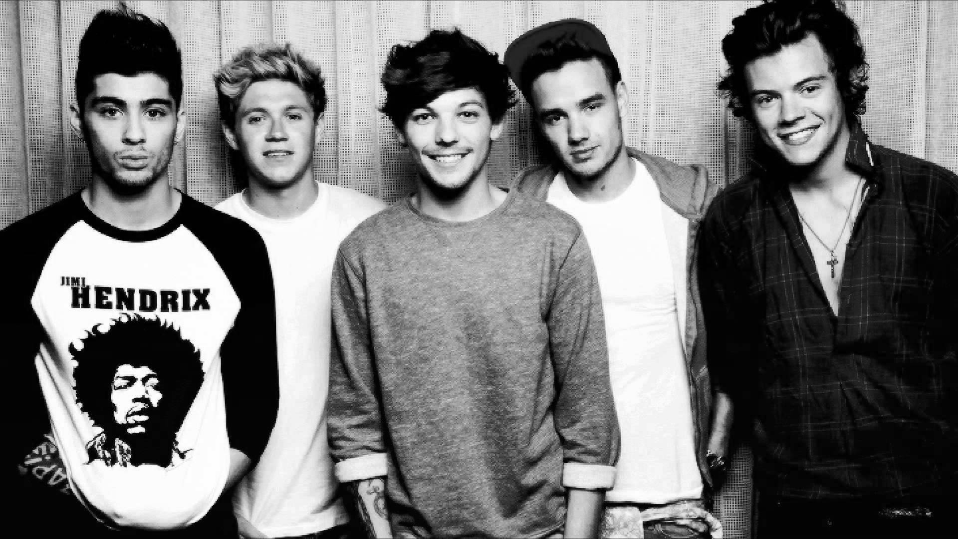 Description: A group of young men standing next to each other in front of a wall with a picture of a man on it.