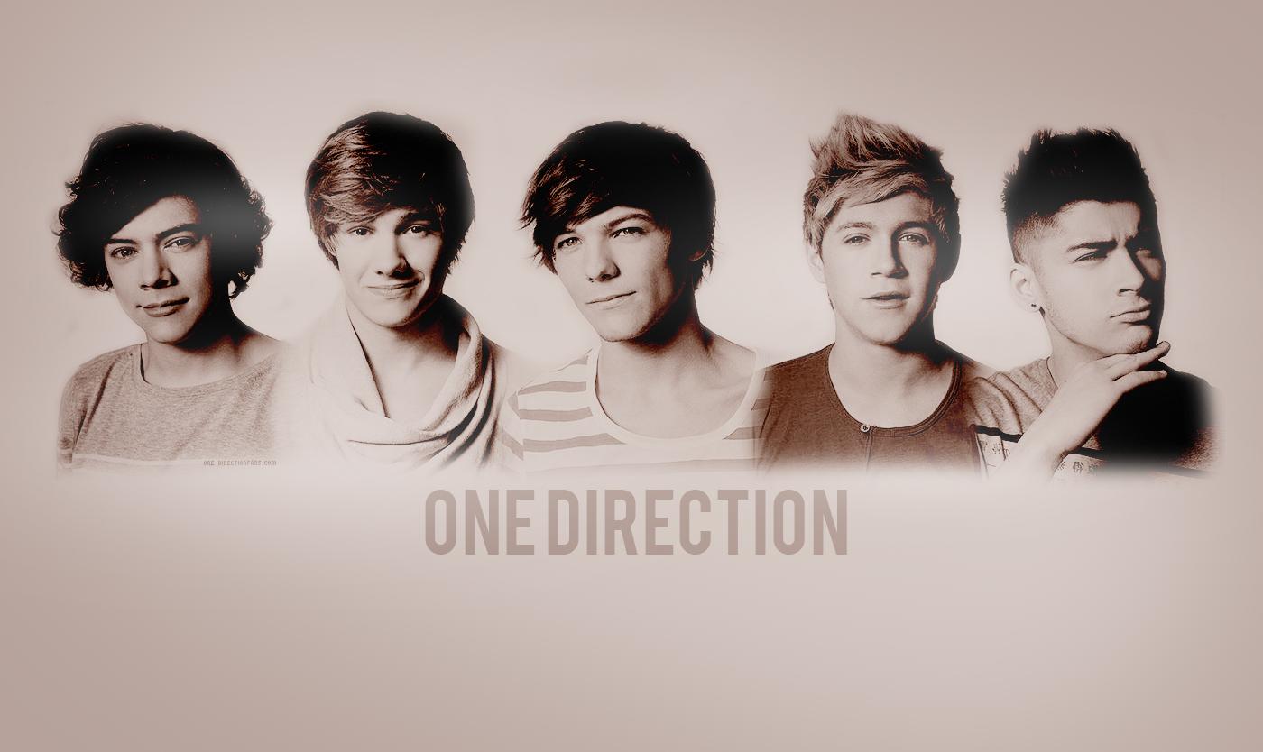 Description: A group of young men standing next to each other in front of a one direction sign with the word one direction.