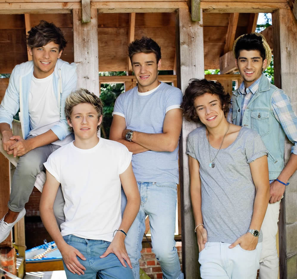 Description: A group of young men standing next to each other in front of a wooden structure with a ladder behind them.