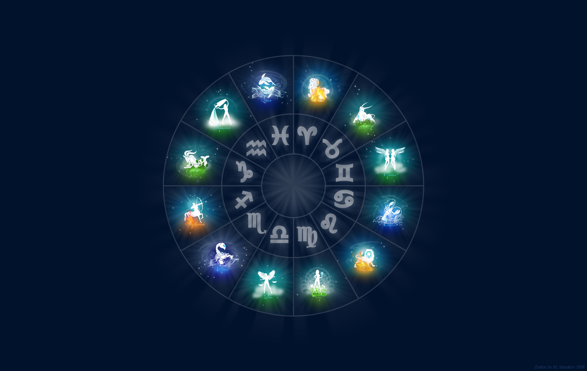 Description: A zodiac wheel with zodiac signs in it on a dark background with a blue background and a blue background.